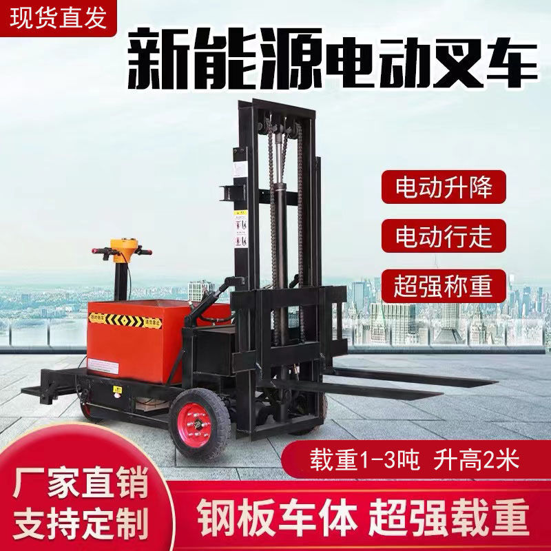 鹿寨县小型电动叉车1吨站驾式2吨液压升高铲车全自动仓储堆高车